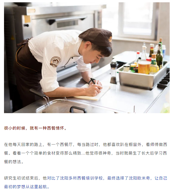 学员故事 | 少年正芳华 未来定可期! 2020-07-23 浏览 学技术,更多人选择沈阳欧米奇 上市品牌:股票代码00667.HK,实力强; 央视推荐:CCTV1、CCTV6联合推荐,更专业的西点烘焙学校; ♦产品前沿:已有多款产品获国家发明专利; 就业推荐:2万+家合作单位,毕业推荐就业; ♦创业帮扶:前、中、后三位一体,专业团队守护你的老板梦;