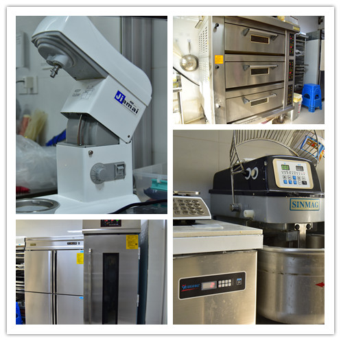 在原材料上,他根据在沈阳欧米奇的学习经验,选择比较高端的品类,保障产品的质量。因此,原料的成本大约占据整个销售额的30%~40%。也正是因为在沈阳欧米奇的学习经历,他选择了几乎和学校一样的专业设备。“因为学校的设备比较好,而且我选择开的是高、中端的店,设备也需要选择得比较好。主要是用新麦设备,如三层、两盘的烤箱、新麦的冷冻醒发箱、新麦的冰箱、还有新麦的打蛋器,以新麦的那个全系列产品为主。还有一些风和日丽的模具、工具。