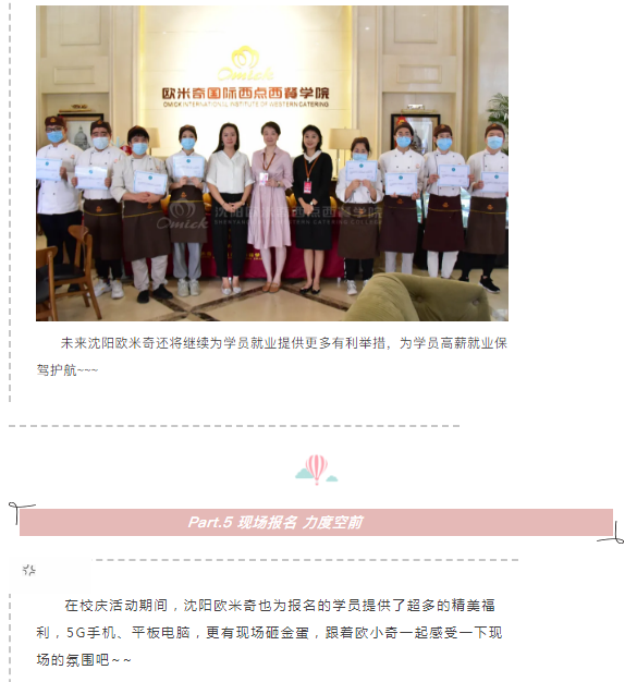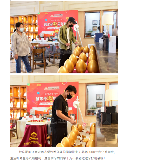 高能回顾 | 欧米奇32周年校庆,多重活动惊喜献礼! 2020-08-24 浏览 学技术,更多人选择沈阳欧米奇 上市品牌:股票代码00667.HK,实力强; 央视推荐:CCTV1、CCTV6联合推荐,更专业的西点烘焙学校; ♦产品前沿:已有多款产品获国家发明专利; 就业推荐:2万+家合作单位,毕业推荐就业; ♦创业帮扶:前、中、后三位一体,专业团队守护你的老板梦;