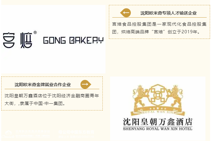 本次活动诚邀沈阳欧米奇就业合作单位宫焙食品控股集团、沈阳皇朝万鑫酒店的招聘负责人莅临现场,为新专业落成仪式剪彩助阵。