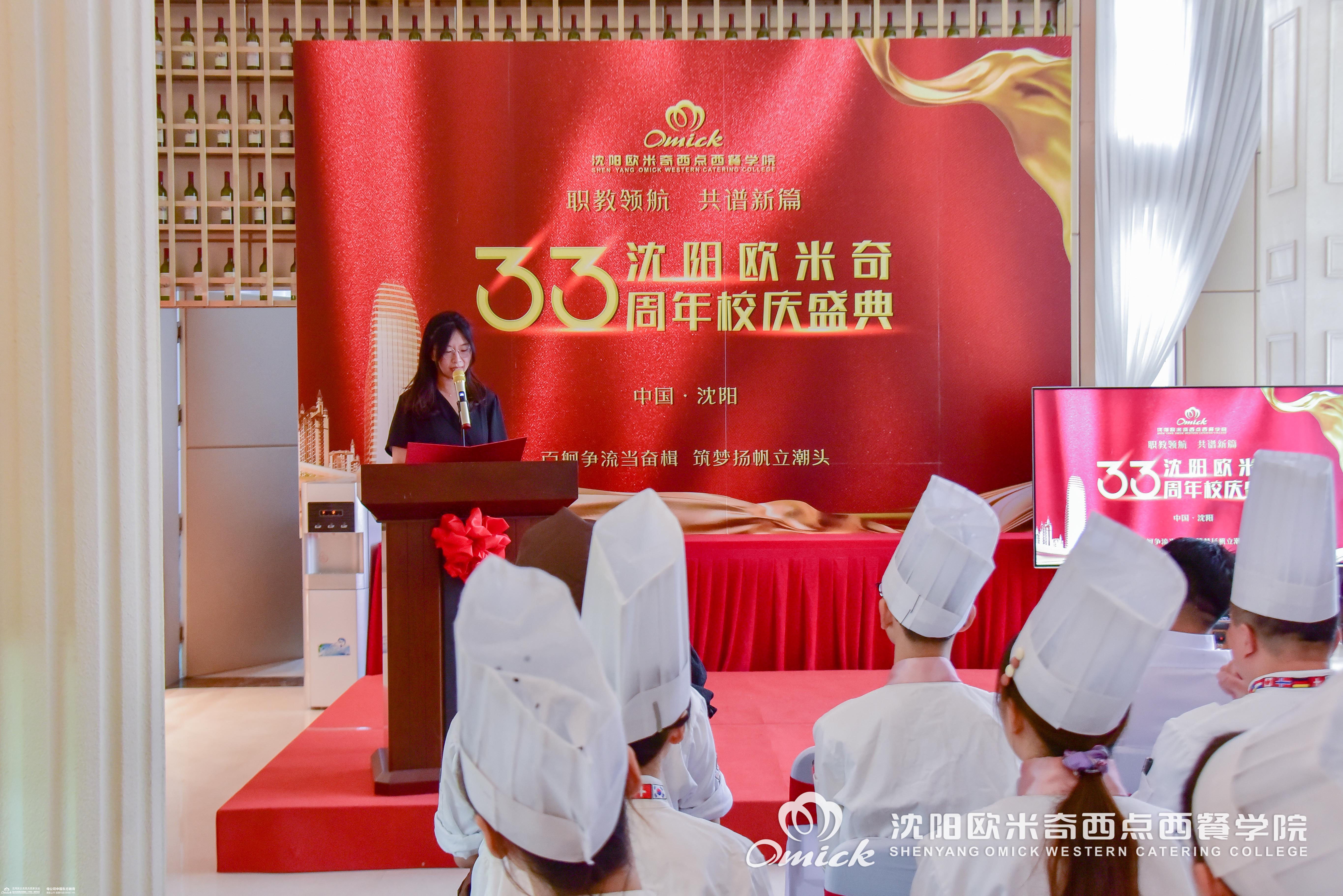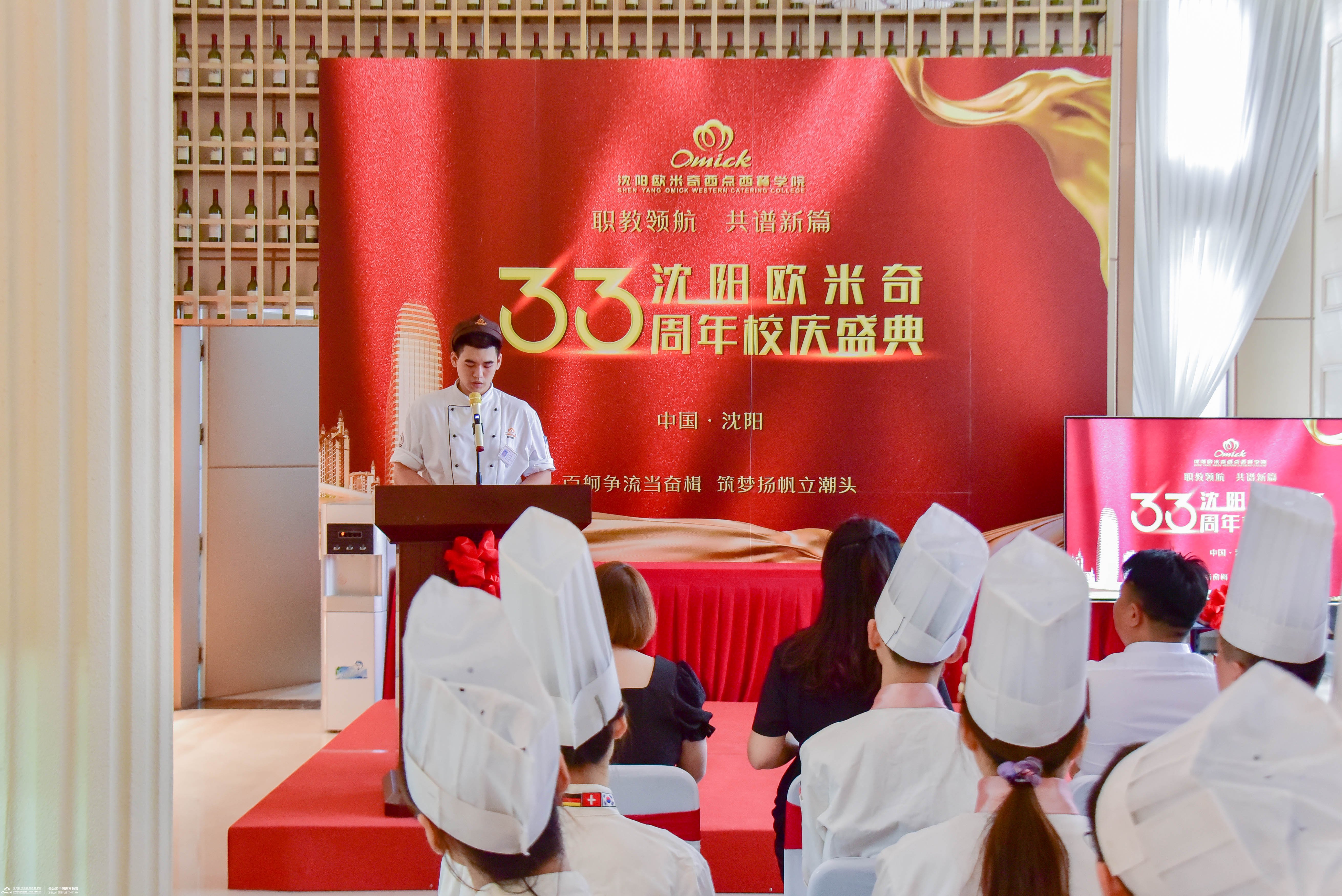 随后,沈阳欧米奇在校学生代表上台致辞,为母校献上一份真挚的祝福。在沈阳欧米奇西点西餐学院33周年校庆来临之际,学生代表庄严承诺,将不忘母校栽培之恩,不负母校专业之名,成长为能够让学校骄傲的新时代人才!