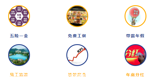 以上企业的福利待遇:五险一金、免费工餐、带薪年假、员工旅游、绩效奖金、年底分红……