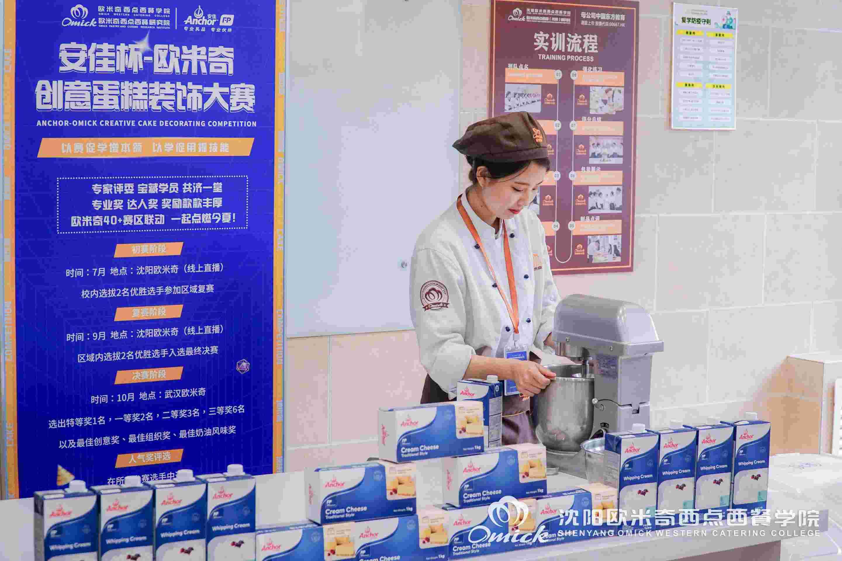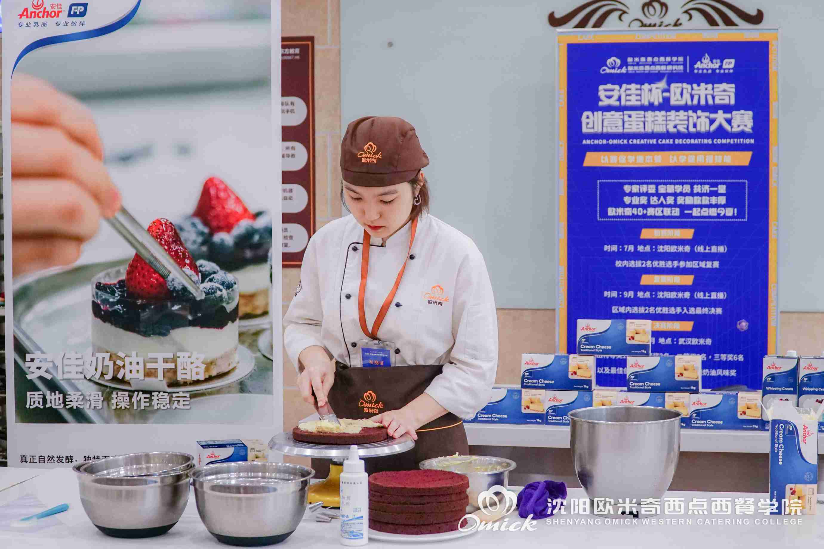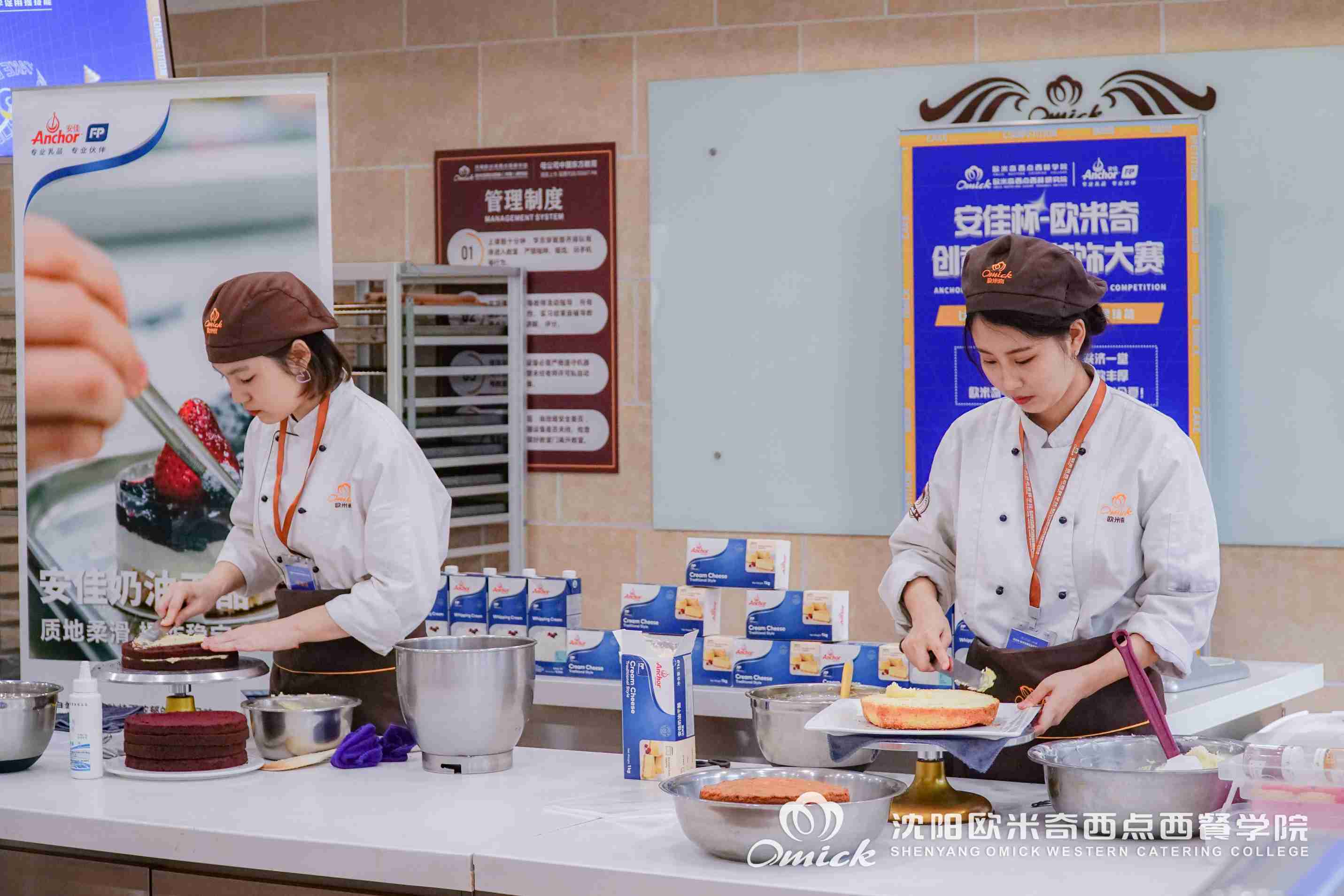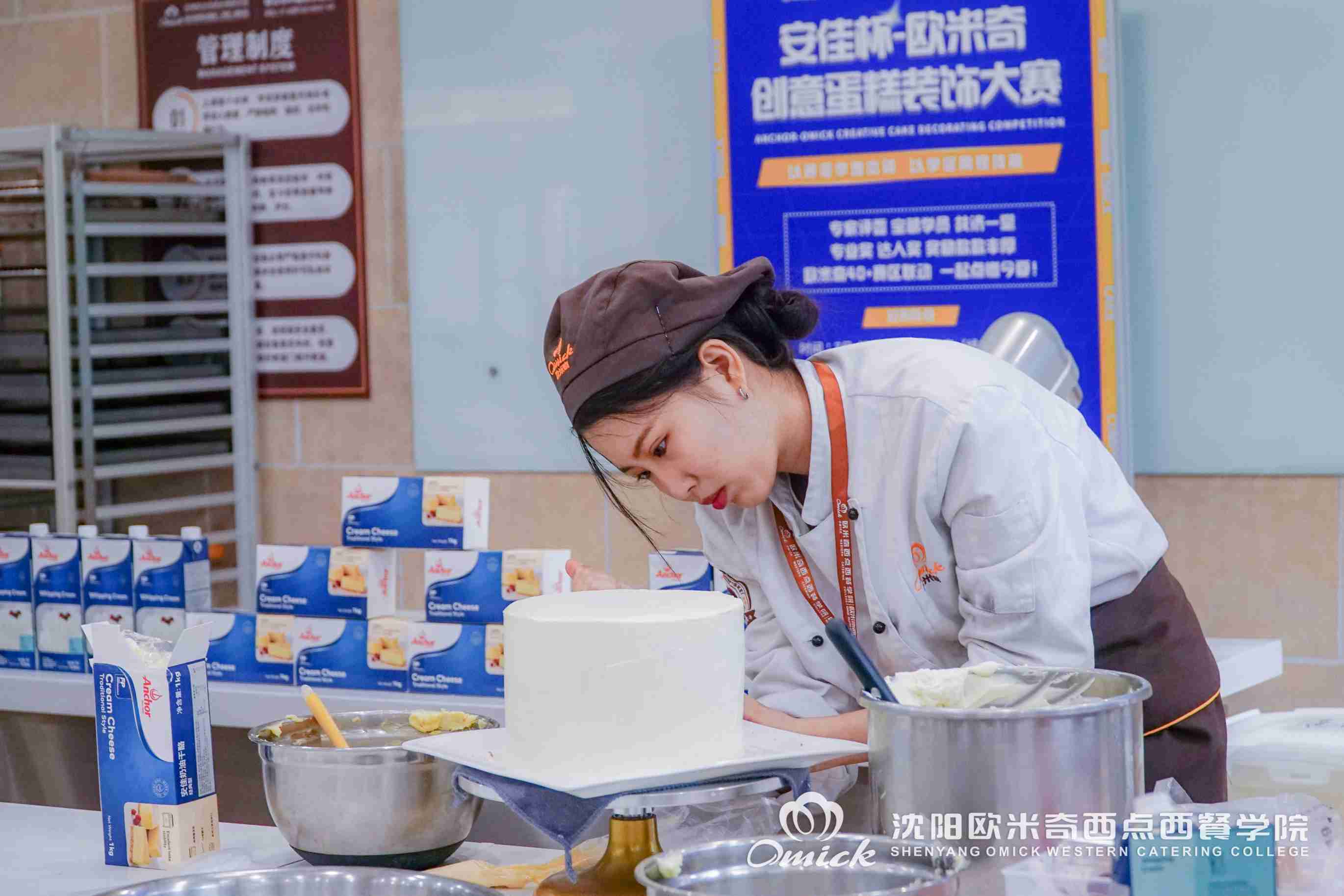 9月27,由中国东方教育、欧米奇西点西餐教育主办,恒天然商贸(上海)有限公司赞助的“安佳杯-欧米奇创意蛋糕装饰大赛”华北区复赛拉开帷幕!全国六大赛区76名选手同台竞技在线直播PK,沈阳欧米奇郗源源、叶虹伶两位同学尽锐出战!