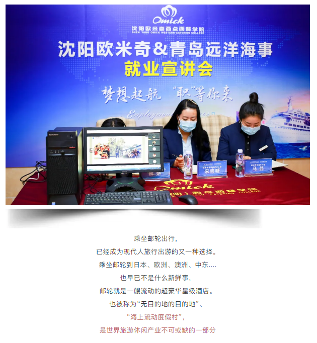 “职”等你来丨沈阳欧米奇&青岛远洋游轮大型云端校企招聘宣讲会圆满闭幕! 2020-05-29 浏览 学技术,更多人选择沈阳欧米奇 上市品牌:股票代码00667.HK,实力强; 央视推荐:CCTV1、CCTV6联合推荐,更专业的西点烘焙学校; ♦产品前沿:已有多款产品获国家发明专利; 就业推荐:2万+家合作单位,毕业推荐就业; ♦创业帮扶:前、中、后三位一体,专业团队守护你的老板梦; 2020年一场突如其来的疫情 给城市按下暂停键 但生活不会暂停 我们仍需努力 沈阳欧米奇&青岛远洋游轮 专场云端招聘宣讲会 5月7日 如约启动 “屏对屏”求职指导 在线就能找工作~